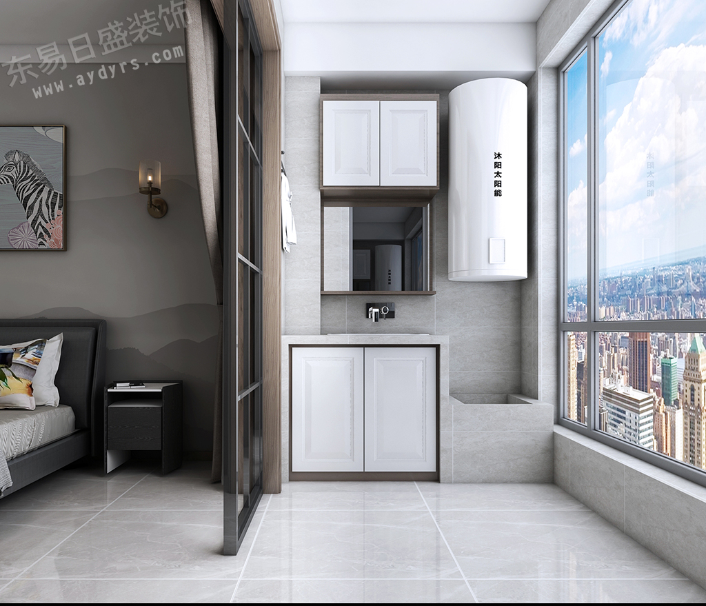 阳台主色调与卧室保持了一致,过渡自然,